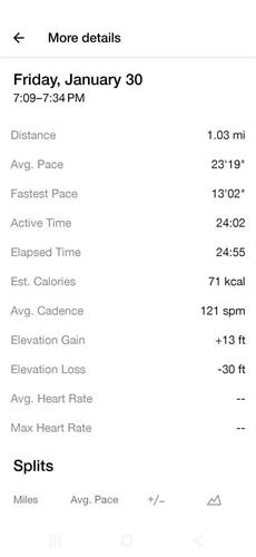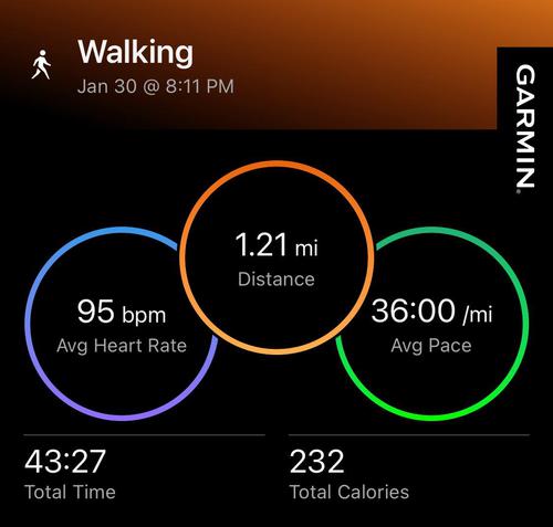 1.12 miles of running/Walking = 1.12 miles -